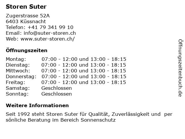 | Öffnungszeiten Storen Suter in Küssnacht anzeigen | |