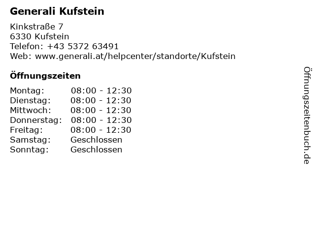 | Öffnungszeiten Generali Kufstein in Kufstein anzeigen | |
