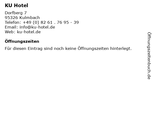 | Öffnungszeiten KU Hotel in Kulmbach anzeigen | |