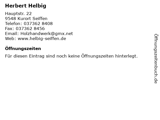 | Öffnungszeiten Herbert Helbig in Kurort Seiffen anzeigen | |