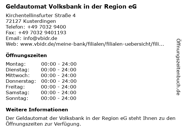 1 Geldautomat Volksbank in der Region eG (Entfernung: 2,29 km) Rathaussträßle 2, 72138 Kirchentellinsfurt 6 |