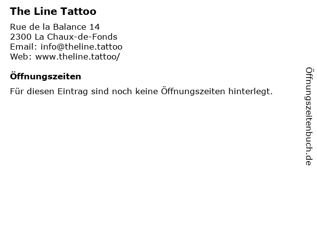 | Öffnungszeiten The Line Tattoo in La Chaux-de-Fonds anzeigen | |