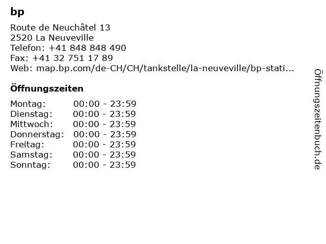 Öffnungszeiten bp in La Neuveville anzeigen | |