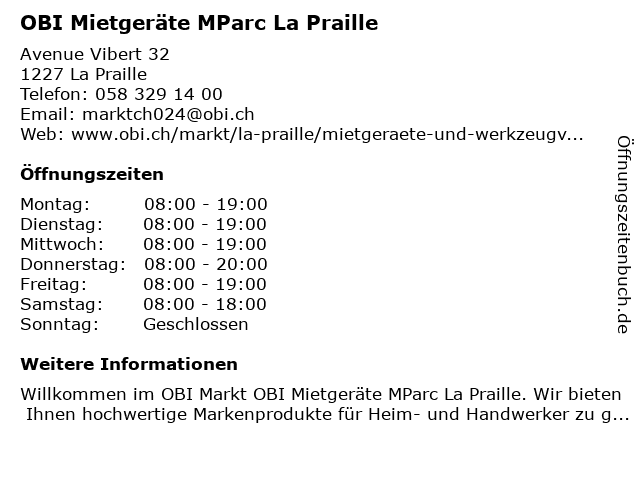 Branchen & Suchbegriffe zu OBI Mietgeräte MParc La Praille:la, mietgeräte, mparc, obi, praille |
