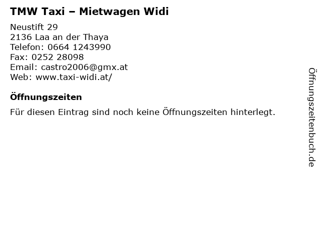 | TMW Taxi – Mietwagen Widi anrufen | |