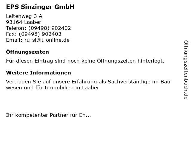 | Öffnungszeiten EPS Sinzinger GmbH in Laaber anzeigen | |