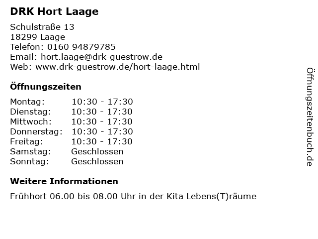 | Öffnungszeiten DRK Hort Laage in Laage anzeigen | |