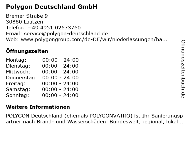 | Öffnungszeiten Polygon Deutschland GmbH in Laatzen anzeigen | |