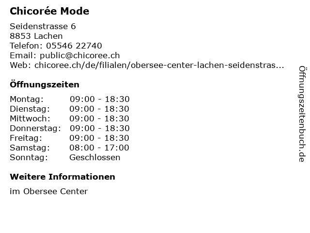 | Öffnungszeiten Chicorée Mode in Lachen anzeigen | |