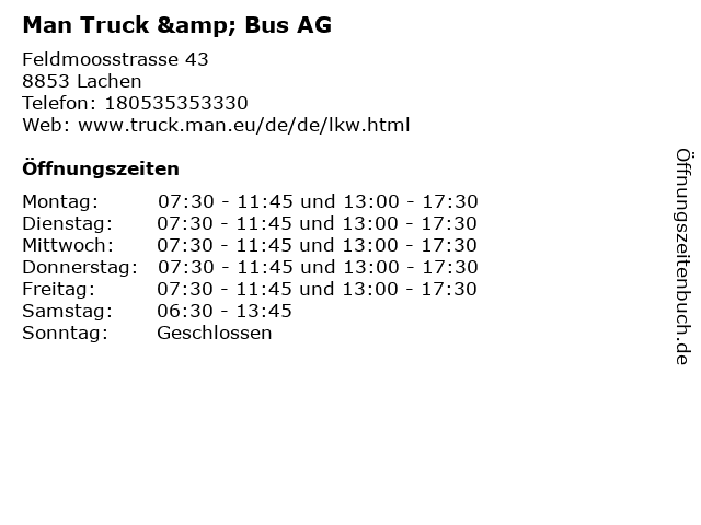 | Öffnungszeiten Man Truck & Bus AG in Lachen anzeigen | |