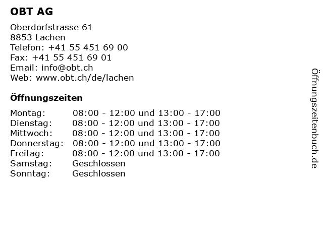 | Öffnungszeiten OBT AG in Lachen anzeigen | |