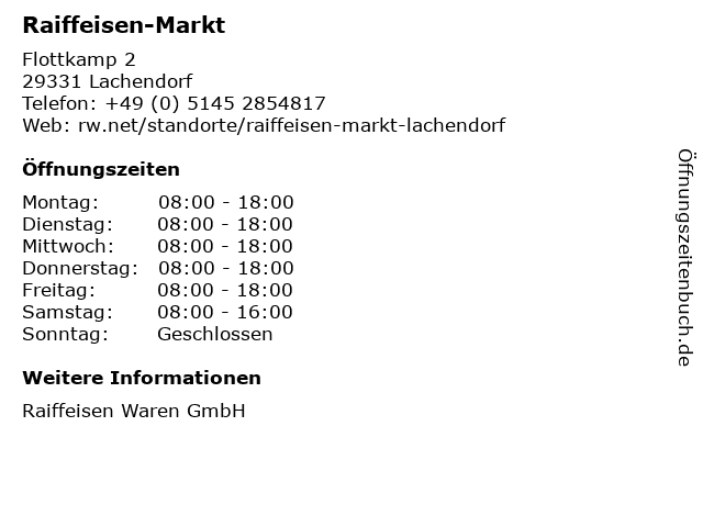 | Öffnungszeiten Raiffeisen-Markt in Lachendorf anzeigen | |