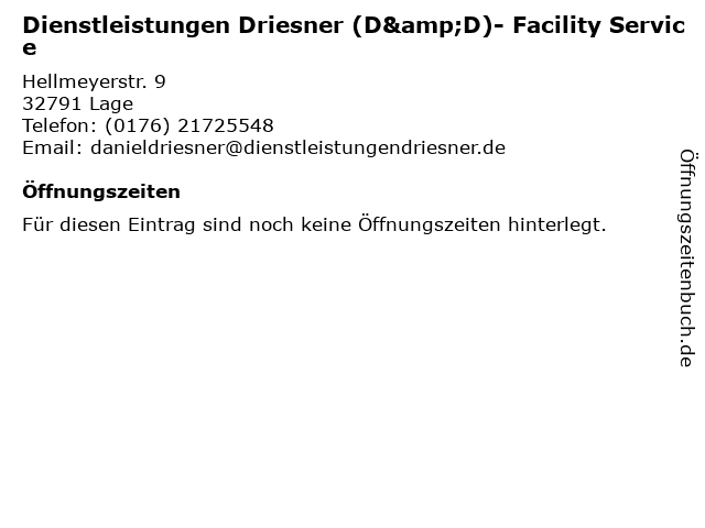 | Dienstleistungen Driesner (D&D)- Facility Service anrufen | |
