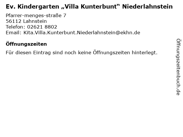 | Ev. Kindergarten „Villa Kunterbunt“ Niederlahnstein anrufen | |