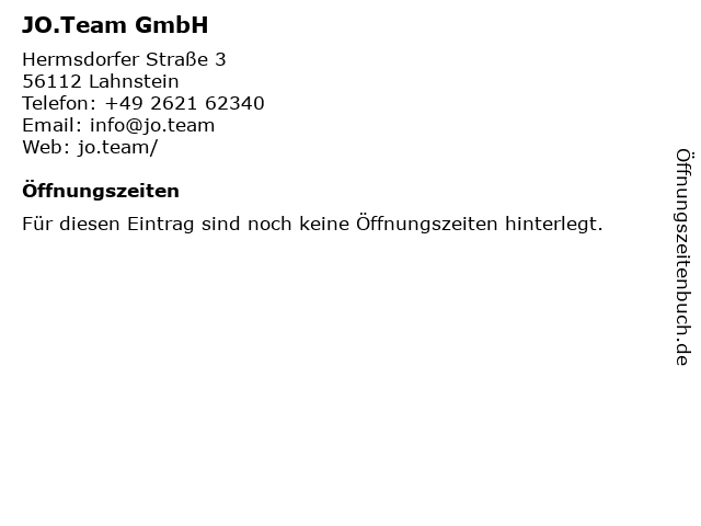 | Öffnungszeiten JO.Team GmbH in Lahnstein anzeigen | |