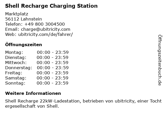 Shell Recharge Charging Station in Lahnstein | Telefonnummer, Öffnungszeiten und Adresse