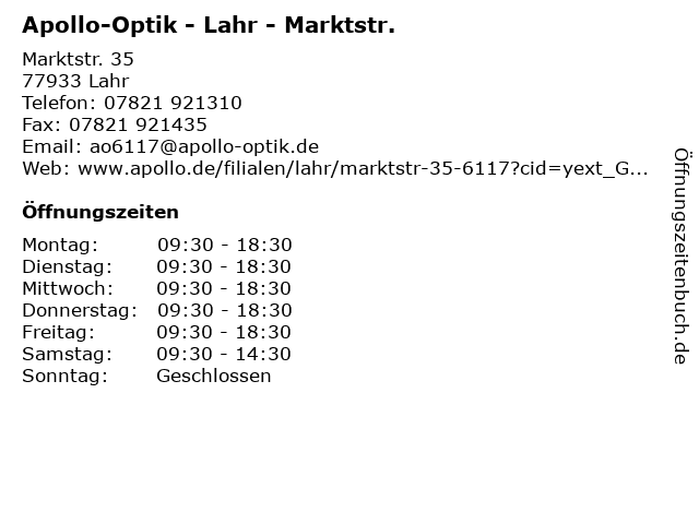 Öffnungszeiten Apollo-Optik - Lahr - Marktstr. in Lahr anzeigen | |