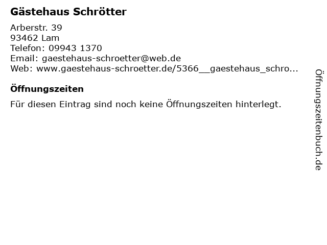 | Öffnungszeiten Gästehaus Schrötter in Lam anzeigen | |