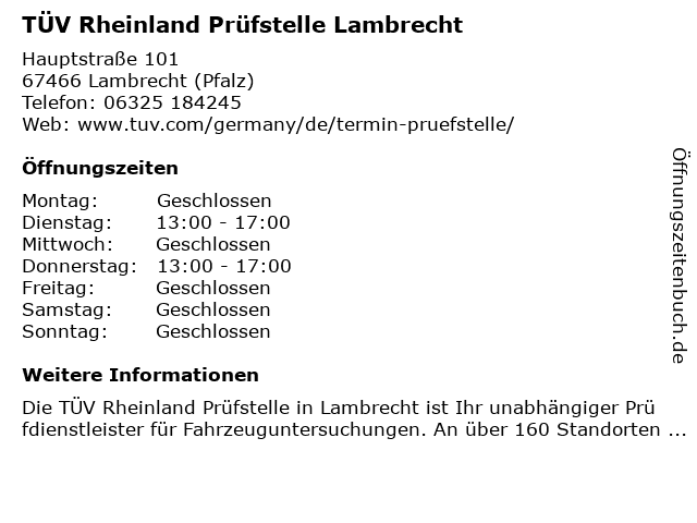 Branchen & Suchbegriffe zu TÜV Rheinland Prüfstelle Lambrecht:prüfstelle, rheinland, tüv |