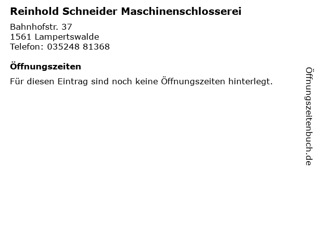 | Reinhold Schneider Maschinenschlosserei anrufen | |