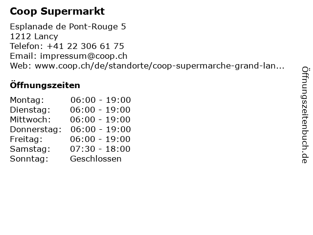 | Öffnungszeiten Coop Supermarkt in Lancy anzeigen | |