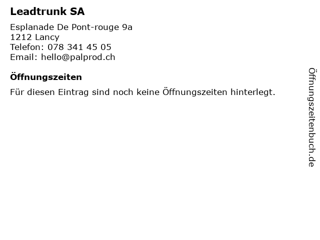 | Öffnungszeiten Leadtrunk SA in Lancy anzeigen | |