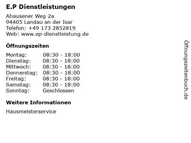 Öffnungszeiten E.P Dienstleistungen in Landau an der Isar anzeigen