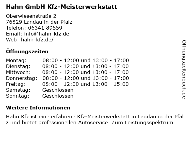 4 Kraftfahrzeug Meisterwerkstatt SIEGFRIED LISCHKA (Entfernung: 9,73 km) Hauptstraße 93, 76831 Göcklingen 6 |