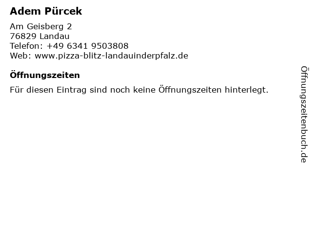 | Öffnungszeiten Adem Pürcek in Landau anzeigen | |