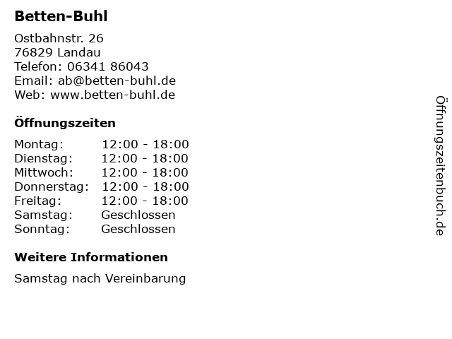 | Öffnungszeiten Betten-Buhl in Landau anzeigen | |
