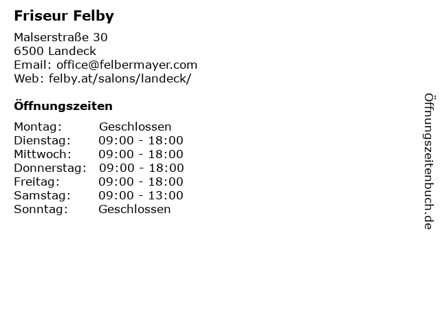 | Öffnungszeiten Friseur Felby in Landeck anzeigen | |