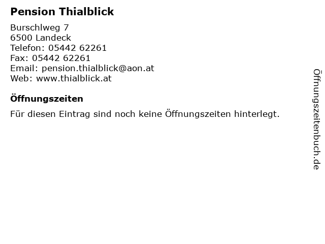 | Öffnungszeiten Pension Thialblick in Landeck anzeigen | |