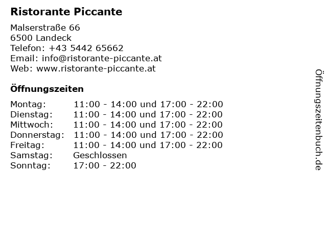 | Öffnungszeiten Ristorante Piccante in Landeck anzeigen | |