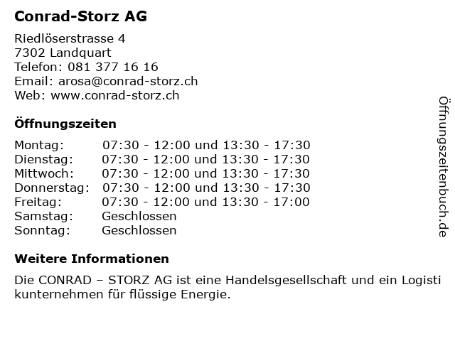 | Öffnungszeiten Conrad-Storz AG in Landquart anzeigen | |