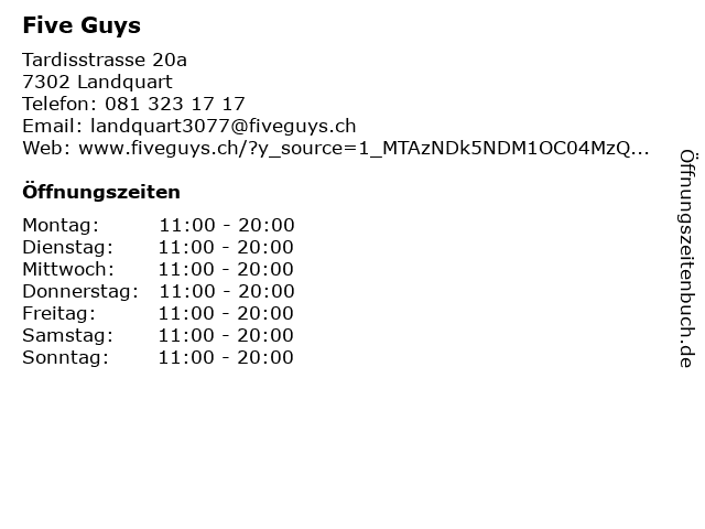 | Öffnungszeiten Five Guys in Landquart anzeigen | |