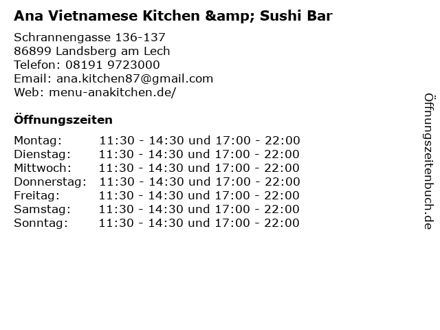 Branchen & Suchbegriffe zu Ana Vietnamese Kitchen & Sushi Bar:ana, bar, essen, gastronomie, getränke, hauptgerichte, kitchen, restaurant, salate, sushi, vietnamese, vorspeisen |