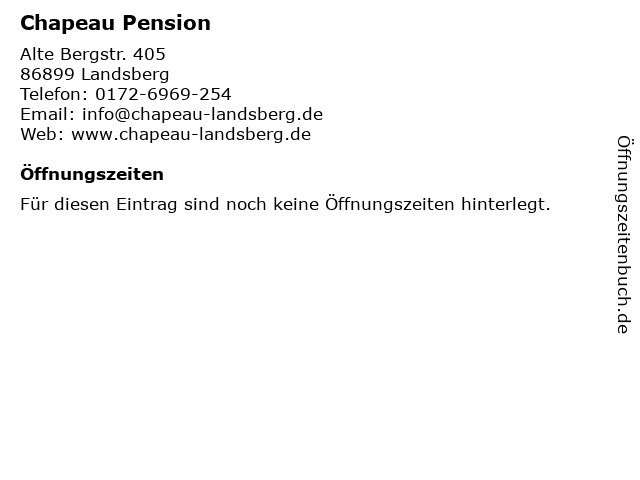 | Öffnungszeiten Chapeau Pension in Landsberg anzeigen | |