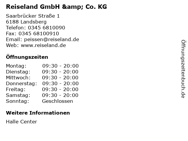 | Öffnungszeiten Reiseland GmbH & Co. KG in Landsberg anzeigen | |