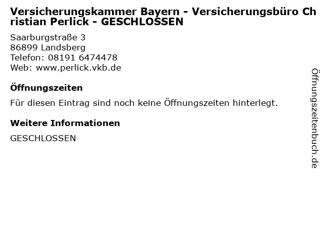 | Versicherungskammer Bayern - Versicherungsbüro Christian Perlick - GESCHLOSSEN anrufen | |