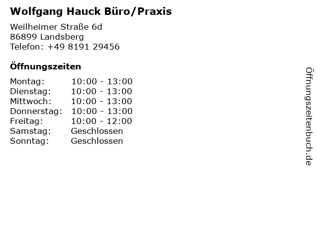 | Öffnungszeiten Wolfgang Hauck Büro/Praxis in Landsberg anzeigen | |