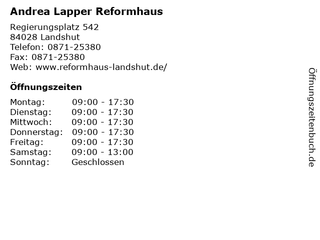 | Öffnungszeiten Andrea Lapper Reformhaus in Landshut anzeigen | |