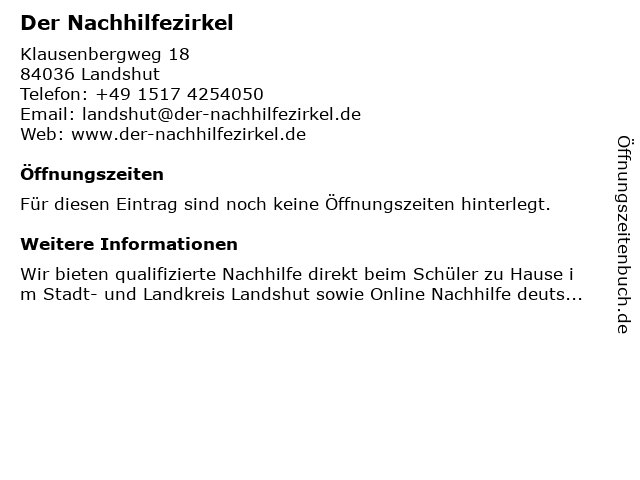 | Adresse Der Nachhilfezirkel in Landshut anzeigen |