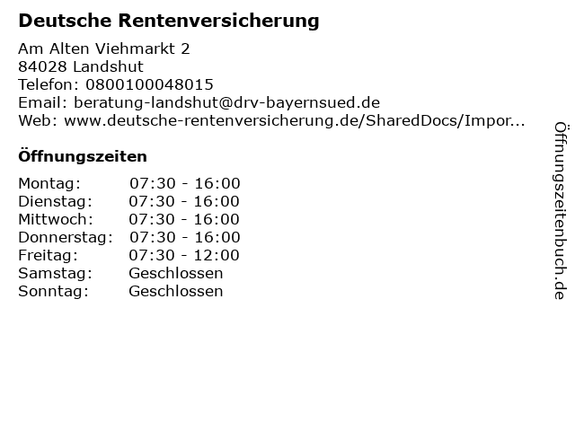 | Öffnungszeiten Deutsche Rentenversicherung in Landshut anzeigen | |