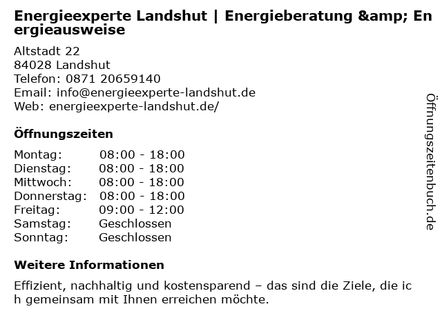 1 Energieexperte Landshut | Energieberatung & Energieausweise (Entfernung: 10,26 km) Bahnhofstraße 6, 84144 Geisenhausen 6 Energieexperte Landshut | Energieberatung & Energieausweise (Entfernung: 20,01 km) Spirkavilsweg 6, 84149 Velden |