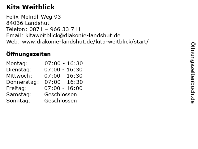 | Öffnungszeiten Kita Weitblick in Landshut anzeigen | |