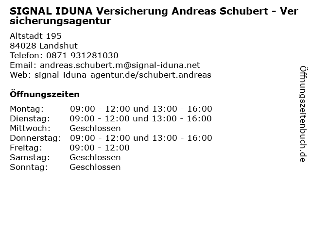 1 SIGNAL IDUNA Versicherung Adel Becirovic - Versicherungsagentur (Entfernung: 0,00 km) Altstadt 195, 84028 Landshut 2 SIGNAL IDUNA Versicherung Toni Matkovic - Versicherungsagentur (Entfernung: 0,00 km) Altstadt 195, 84028 Landshut 3 SIGNAL IDUNA Versicherung Fabian Hartl - Versicherungsagentur (Entfernung: 0,01 km) Altstadt 195, 84028 Landshut 5 SIGNAL IDUNA Versicherung Andreas Kasten - Versicherungsagentur (Entfernung: 0,75 km) Am Alten Viehmarkt 5, 84028 Landshut 6 |