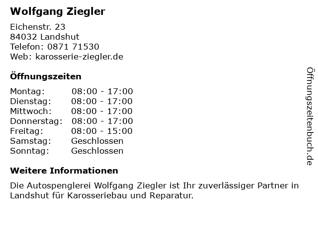 | Öffnungszeiten Wolfgang Ziegler in Landshut anzeigen | |