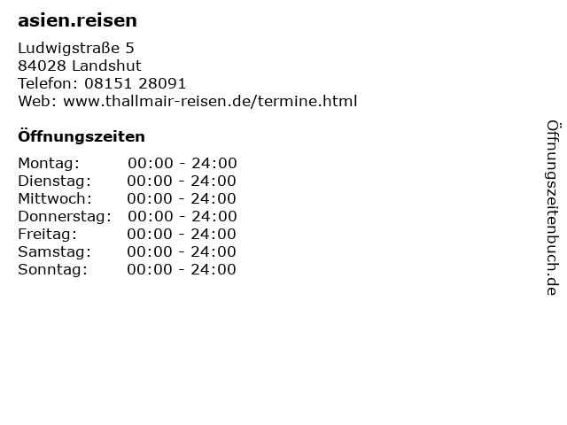 | Öffnungszeiten asien.reisen in Landshut anzeigen | |