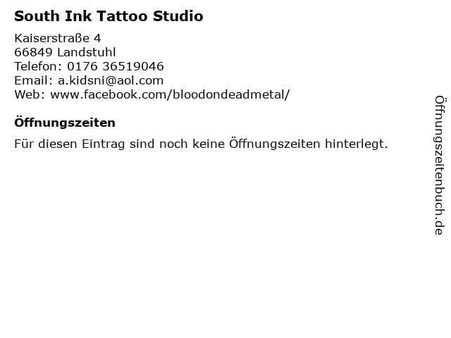 | Öffnungszeiten South Ink Tattoo Studio in Landstuhl anzeigen | |