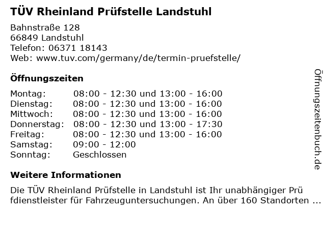 Branchen & Suchbegriffe zu TÜV Rheinland Prüfstelle Landstuhl:prüfstelle, rheinland, tüv |